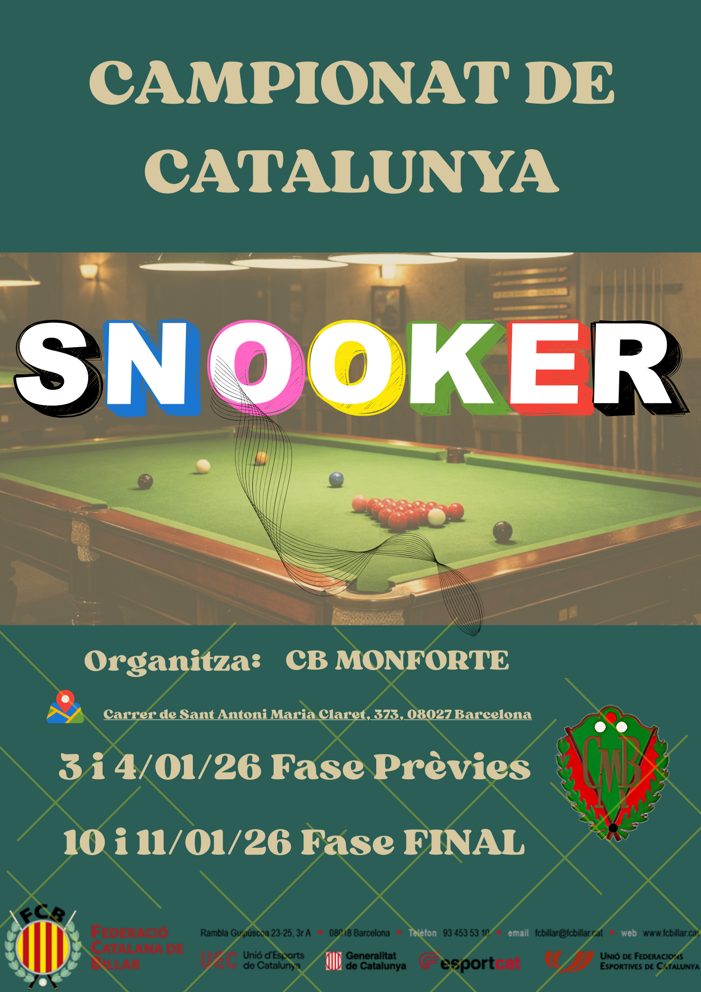 © 2026 Federació Catalana de Billar - Rambla Guipúscoa, 23-25, 3er A 08018 Barcelona - Tel. 93 453 53 10 - fcbillar@fcbillar.cat